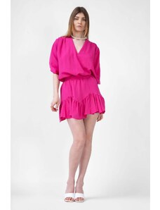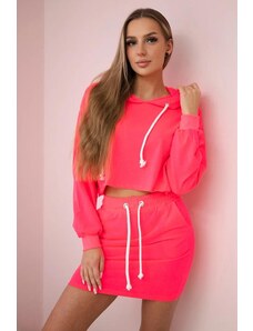 BLUZAT Neon Pink Matching Set With Draped Blouse And Skort XS