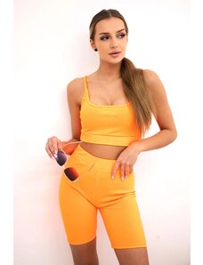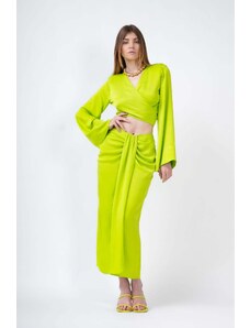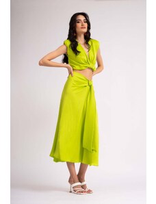 BLUZAT Neon set with knotted top and midi skirt XS / Green