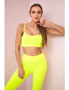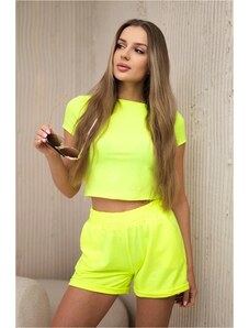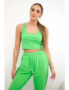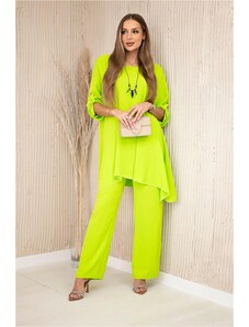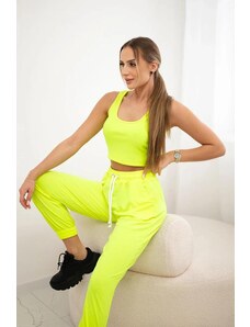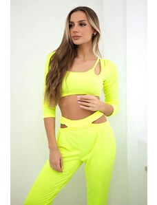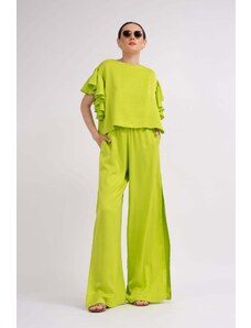 BLUZAT Neon green set with ruffled T-shirt and trousers with slits XS / Green