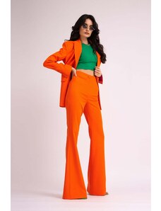 BLUZAT Neon orange suit with slim fit blazer and flared trousers L / Orange