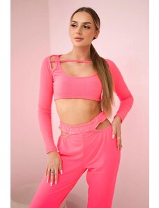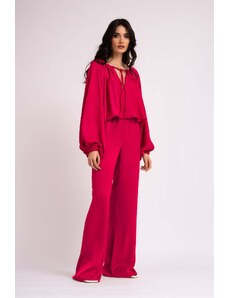 BLUZAT Neon pink set with blouse and wide leg trousers XS / Fuchsia