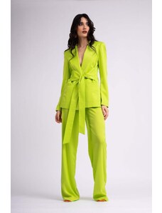 BLUZAT Neon green suit with blazer with scarves and wide leg pants XS / Green
