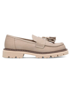 Beżowe mokasyny damskie na bieżnikowanej platformie ozdobne frędzle kokarda z koralikami Carla NW2384-7