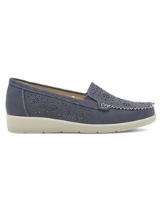 Niebieskie mokasyny ażurowe na platformie damskie z ozdobą Casu M24X3-BL