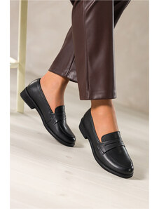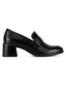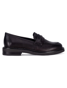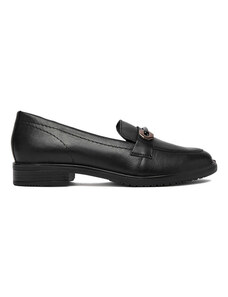 Czarne mokasyny skórzane damskie Sergio Leone na niskim szerokim obcasie ozdobny pasek na cholewce NP74887-H