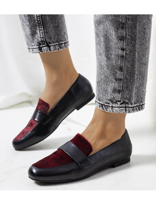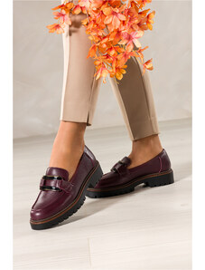 Bordowe mokasyny skórzane damskie Sergio Leone na bieżnikowanej podeszwie czarna ozdoba na cholewce NP74833-H