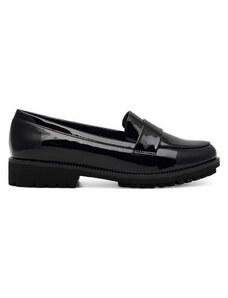 Czarne mokasyny skórzane damskie z ozdobą lakierowane na słupku PRODUKT POLSKI Casu 20155