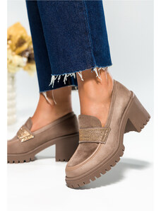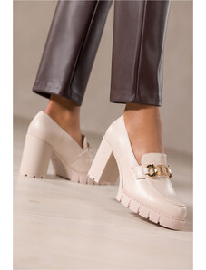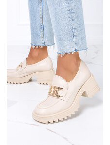Beżowe mokasyny na słupku ze złotym łańcuchem POLSKA SKÓRA Casu 20107