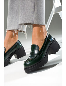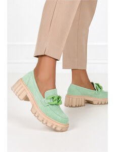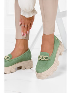 Zielone mokasyny z łańcuchem na platformie Casu G23X4-G