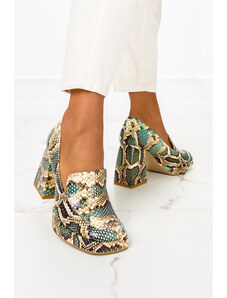 Wielokolorowe mokasyny na klocku wzór wężowy POLSKA SKÓRA Casu 3195