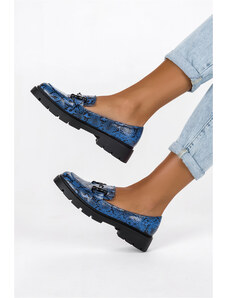 Niebieskie mokasyny klasyczne damskie ze sprzączką wzór wężowy Casu D23WX3-S