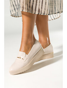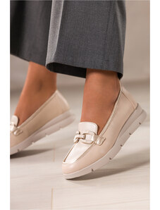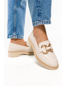 Beżowe mokasyny skórzane na platformie z łańcuchem PRODUKT POLSKI Casu 20089