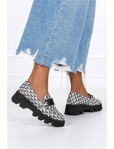 Białe mokasyny skórzane damskie na platformie z łańcuchem PRODUKT POLSKI Casu 2601-785