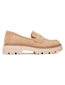 Estro: Beżowe mokasyny damskie z weluru naturalnego