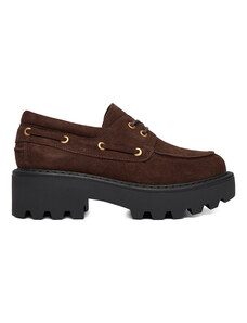 Czekoladowe mokasyny damskie na bieżnikowanej platformie ozdobne frędzle kokarda z koralikami Carla NW2384-4