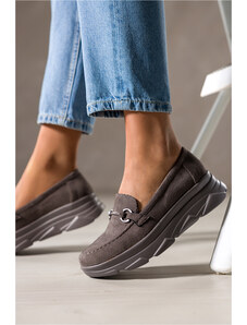 Ciemnoszare mokasyny damskie półbuty na platformie skórzana wkładka ozdoba Carla K-6-5974