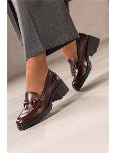 Brązowe mokasyny damskie na platformie z brązową sprzączką Carla CB334-7