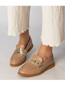 Beżowe mokasyny damskie na platformie ze złotą ozdobą Casu M24X2-BE-NO