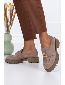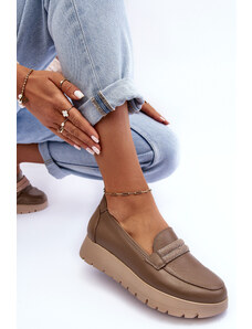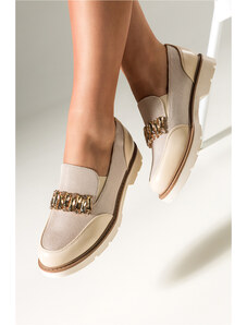 Beżowe mokasyny skórzane na platformie z łańcuchem PRODUKT POLSKI Casu 20089
