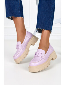 Wrzosowe mokasyny skórzane na platformie z łańcuchem PRODUKT POLSKI Casu 20127