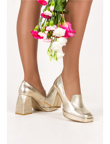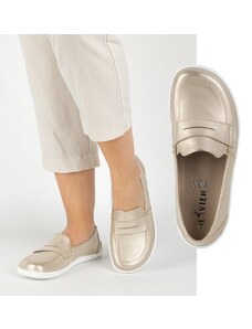 Złote mokasyny skórzane na klocku PRODUKT POLSKI Casu 3195