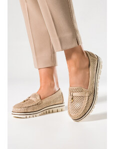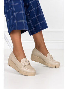 Beżowe mokasyny skórzane na koturnie z łańcuchem PRODUKT POLSKI Casu 20135