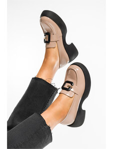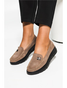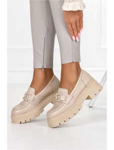 Beżowe mokasyny skórzane na platformie z łańcuchem PRODUKT POLSKI Casu 20127