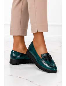Zielone mokasyny skórzane damskie z łańcuchem lakierowane PRODUKT POLSKI Casu 09054