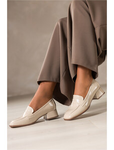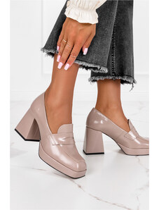 Beżowe mokasyny skórzane damskie na klocku lakierowane PRODUKT POLSKI Casu 2413-620