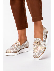 Beżowe mokasyny skórzane damskie na platformie ze złotą ozdobą PRODUKT POLSKI Casu 20153-NO