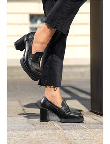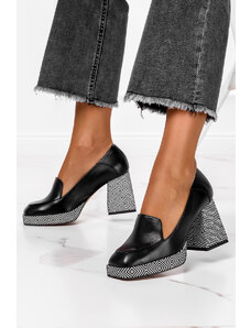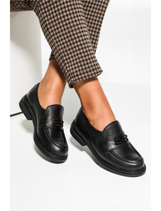 Czarne mokasyny skórzane damskie na ozdobnym klocku PRODUKT POLSKI Casu 09163