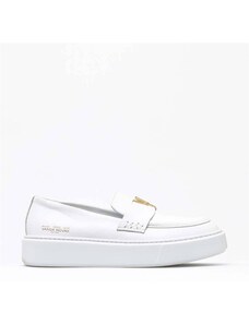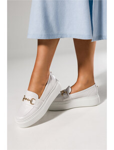 Białe mokasyny skórzane damskie na platformie złota sprzączka PRODUKT POLSKI Casu 2815-129