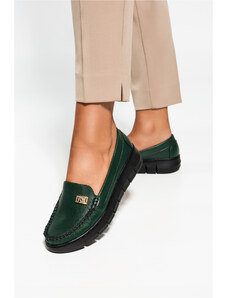 Zielone mokasyny skórzane damskie na platformie ze złotą ozdobą PRODUKT POLSKI Casu 10167