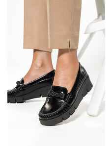 Czarne mokasyny skórzane damskie z ozdobą lakierowane na słupku PRODUKT POLSKI Casu 20155