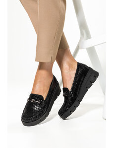 Czarne mokasyny skórzane damskie na koturnie ozdoba z cyrkoniami wzór wężowy PRODUKT POLSKI Casu 989B