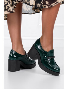 Zielone mokasyny skórzane lakierowane damskie na słupku z cyrkoniami PRODUKT POLSKI Casu 20157-NO