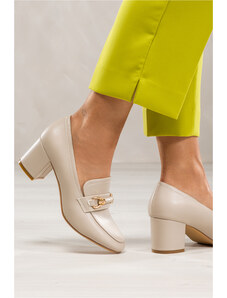 Beżowe mokasyny damskie Sergio Leone ze sprzączką na szerokim słupku skórzana wkładka PB146-CA