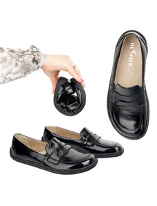 Olivier BAREFOOT Eleganckie Damskie minimalistyczne mokasyny skórzane 1280 czarny lakier