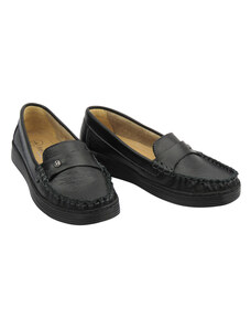 Czarne mokasyny skórzane damskie z czarną ozdobą PRODUKT POLSKI Casu 79825