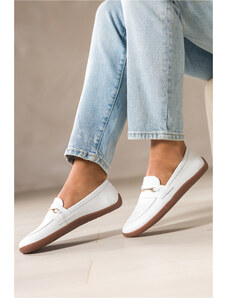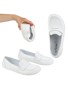Olivier Dalia – damskie mokasyny barefoot ze skóry naturalnej białe