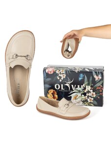 Olivier BAREFOOT Eleganckie Damskie minimalistyczne mokasyny skórzane 1280 beżowe