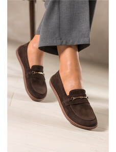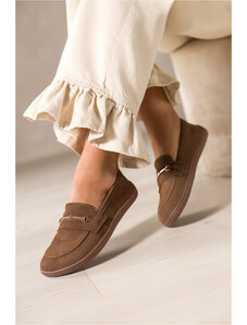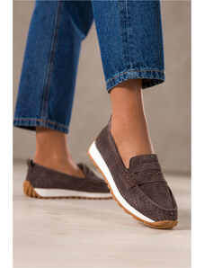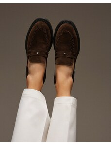 Estro: Ciemnobrązowe mokasyny damskie typu Penny z włoskiego weluru naturalnego Premium