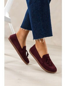 Bordowe mokasyny barefoot skórzane zamszowe damskie szerokie na elastycznej płaskiej podeszwie ozdobne chwosty PRODUKT POLSKI Casu 677
