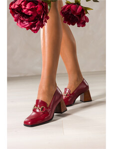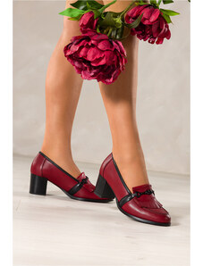 Bordowe mokasyny skórzane damskie na ozdobnym klocku złota sprzączka PRODUKT POLSKI Casu 7317-768
