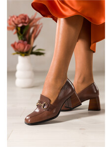 Brązowe mokasyny skórzane damskie na ozdobnym klocku złota sprzączka PRODUKT POLSKI Casu 7317-767