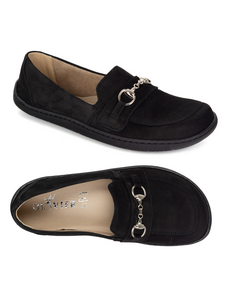 Buty mokasyny BAREFOOT damskie skórzane Olivier Silk czarny welur