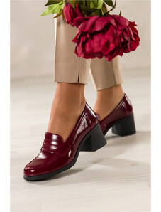 Bordowe mokasyny skórzane damskie lakierowane na szerokim klocku ozdobny pasek PRODUKT POLSKI Casu 2762