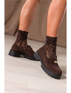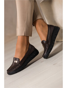 Czekoladowe mokasyny skórzane damskie ażurowe Sergio Leone na żłobionej platformie HK-990