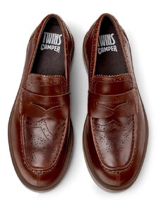 Brązowe mokasyny skórzane damskie półbuty płaskie z ozdobnym kwiatem na cholewce PRODUKT POLSKI Casu 8105