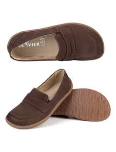 Olivier BAREFOOT Eleganckie Damskie minimalistyczne mokasyny skórzane 1280 brąz nubuk